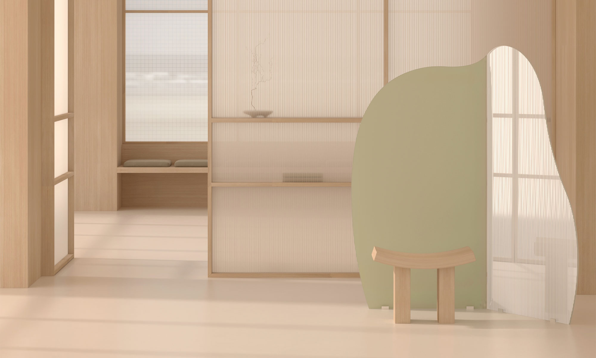 Una serie di tre paraventi in vetro, disegnati da Lidia Covello, con una silhouette irregolare e fluida che esprime l’eleganza e l’armonia dell’ispirazione giapponese. Un design che unisce modernità e tradizione, con leccellenza dei vetri OmniDecor.