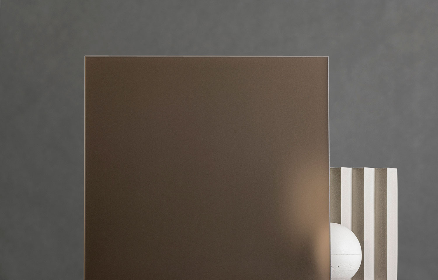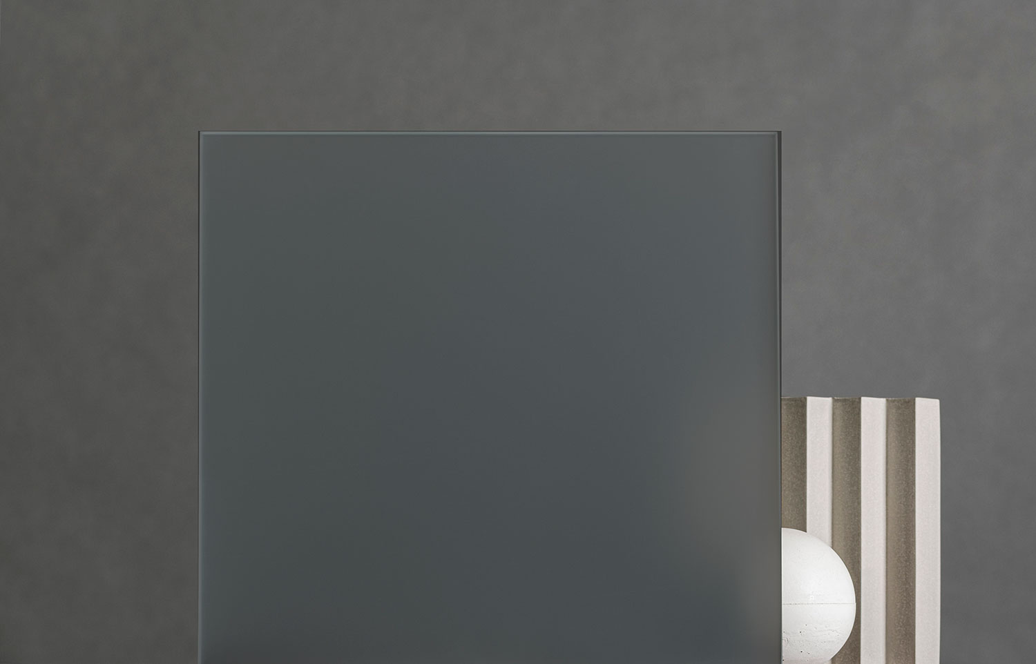 DecorFlou Reflecting è il vetro satinato riflettente ideato da OmniDecor. È un vetro a due facce opposte: una satinata e opaca, l’altra riflettente come uno specchio.