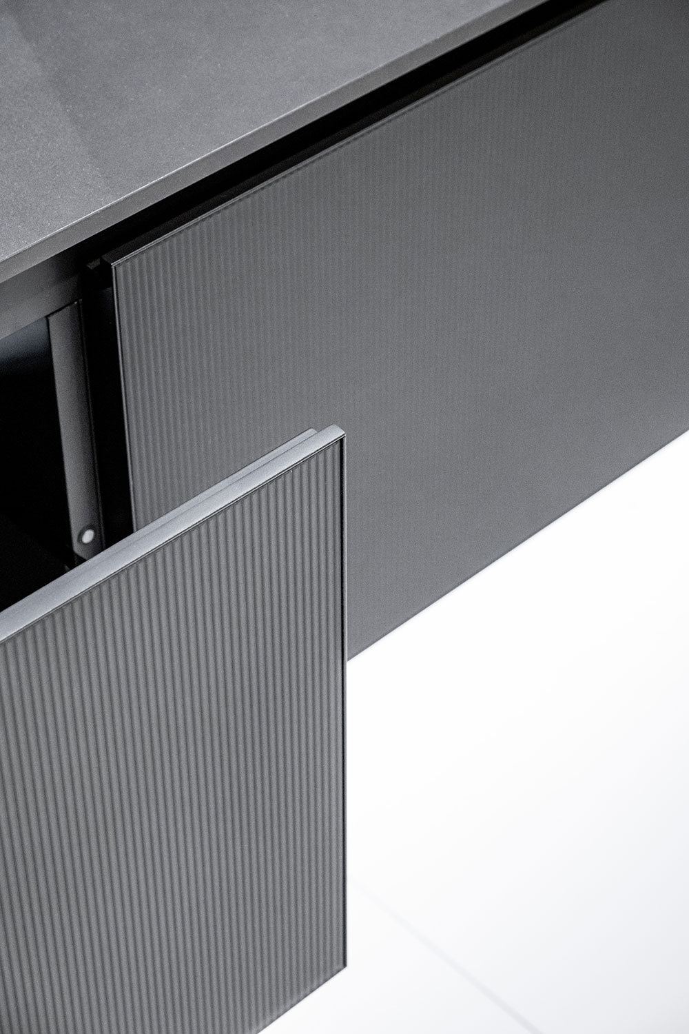 Il colore trova nuove applicazioni anche nelle superfici DecorFlou Design, dove il decoro è ottenuto tramite satinatura. Eleganza e pattern personalizzati ampliano così le possibilità creative e compositive, affiancando la tridimensionalità come ulteriore strumento di espressione.