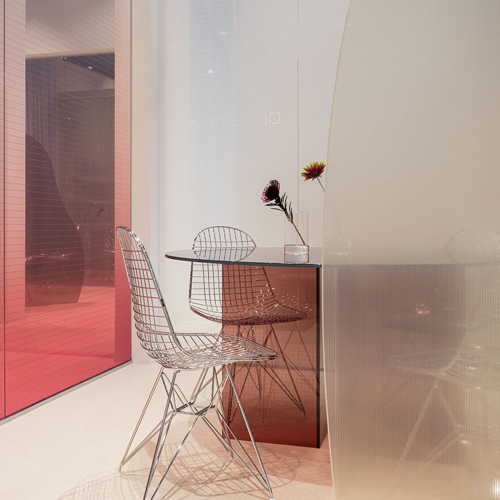 ChromaColor è l’espressione più decisa del colore applicato al vetro. Toni pieni e vibranti trasformano la superficie in un elemento di forte impatto visivo, con cromie personalizzabili in base alle esigenze del progetto. Ogni colore si presenta in modo netto e definito, esaltando la purezza della materia e il dialogo con la luce.